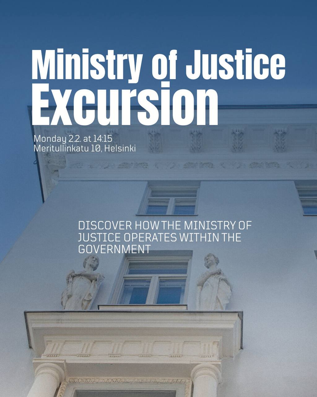 Join us for an exclusive experience at the Ministry of Justice and discover its role in Finland's government.